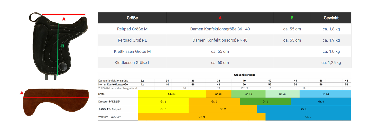 | Größe Reitpad | M Konfektionsgröße 38-40 |