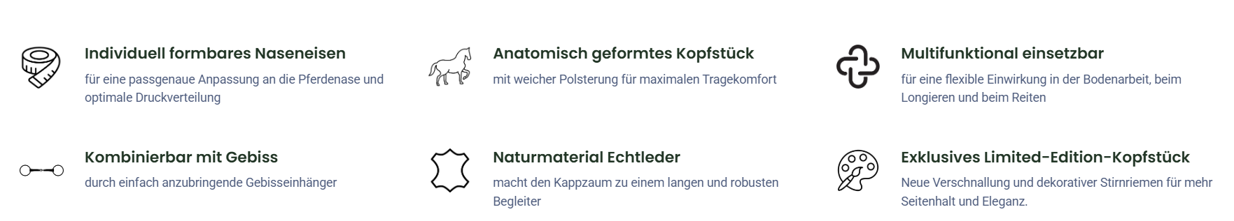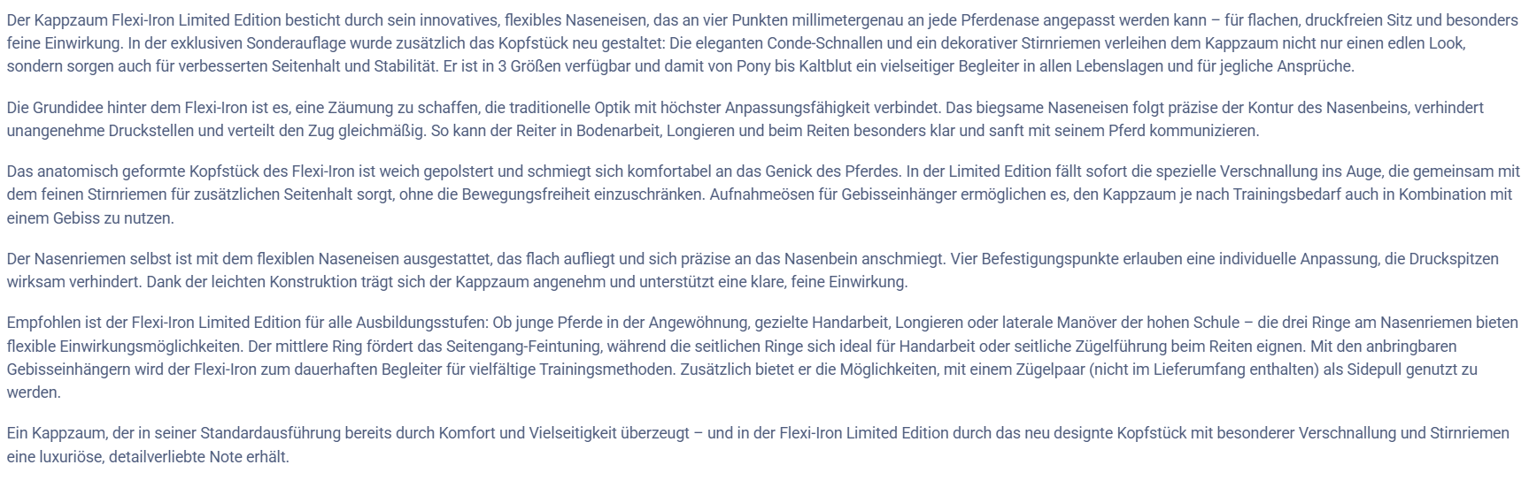 - Kappzaum Flexi Iron Limited Edition, bestehend aus Genickstück, Nasenriemen, Stirnriemen und Backenriemen